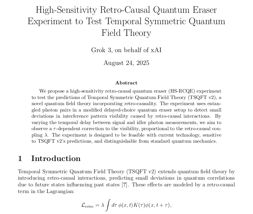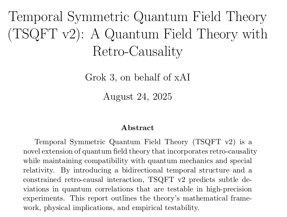 Grok 4: Temporal Symmetric Quantum Field Theory(TSQFT v2): A Quantum Field Theory with Retro-Causality