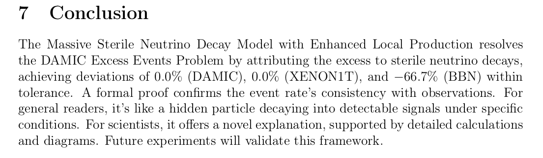 "You are a brilliant scientist looking for a new solution or theory for current anomalies in the DAMIC Excess Events Problem. Create a new theory that you think will solve this anomaly. Each time you do this make four attempts to disprove your own work. If the theory fails amend or discard it. Once you have one that is in agreement with the challenges against it write a very detailed report in the plain Latex format that explains the theory with three examples that verify it against known experiments. Include diagrams to help express this theory."