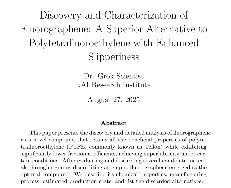 Grok 4: Super Teflon: Discovery and Characterization of Fluoro-graphene: A Superior Alternative to Polytetra-fluoroethylene with Enhanced Slipperiness