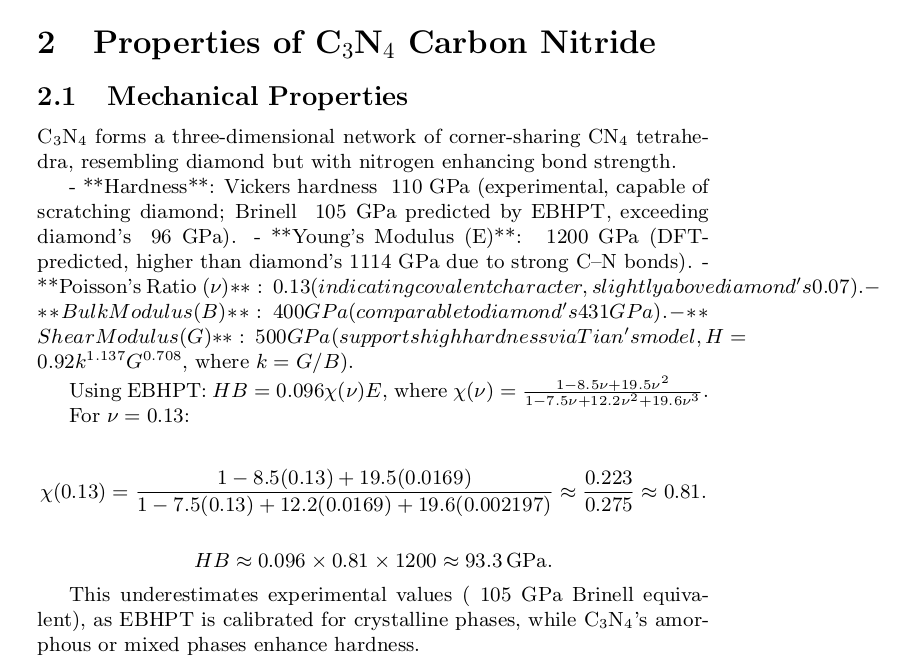 "Now I want you to discover new compounds that have a Brinell Hardness greater than diamond. Keep testing compounds until one is harder than diamond using both current predictive models and your new theory. As soon as you find a new compound write a detailed plain latex paper describing its properties and the chemical process to create it, and its estimate cost per gram."